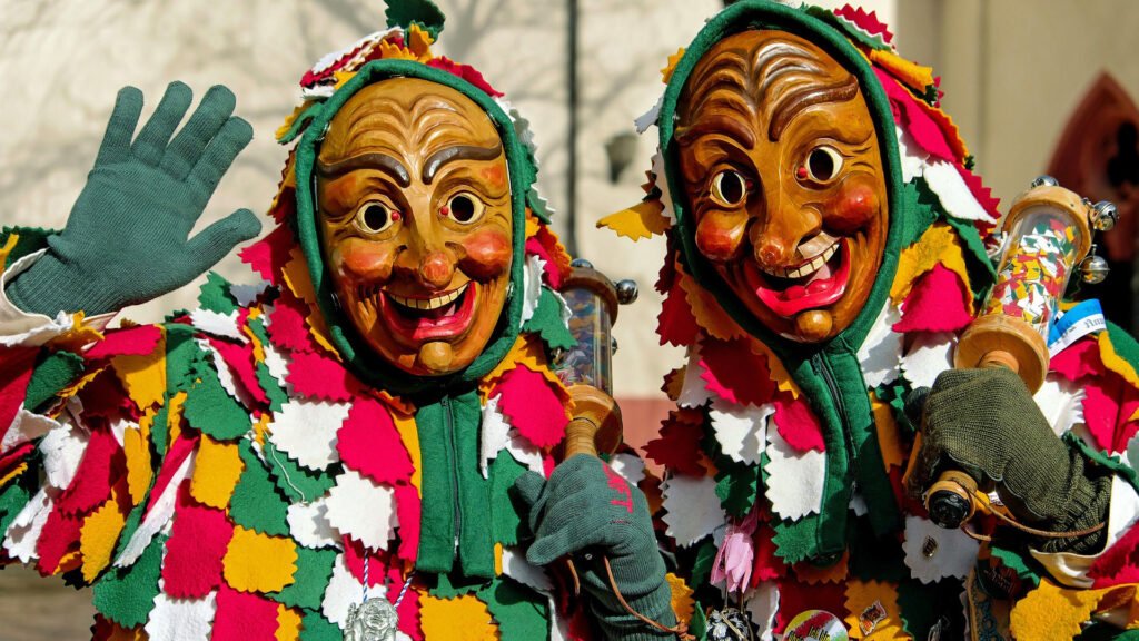 🟡 En Baviera y el sur de Alemania, el Fasching es más tradicional, con máscaras de madera de demonios o brujas, parte de una antigua costumbre para ahuyentar los malos espíritus del invierno. También es común ver a los «Prinz und Prinzessin», figuras simbólicas del carnaval.