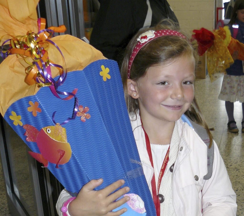 Pero el detalle que nunca puede faltar el primer día de escuela, desde hace generaciones, es la “Schultüte”, tambien llamada “Zuckertüte” en algunas regiones de Alemania. Esta tradición se remonta, al menos, a 1782 en las regiones de Turingia y Sajonia y hoy se encuentra extendida a todas la regiones europeas de habla alemana.